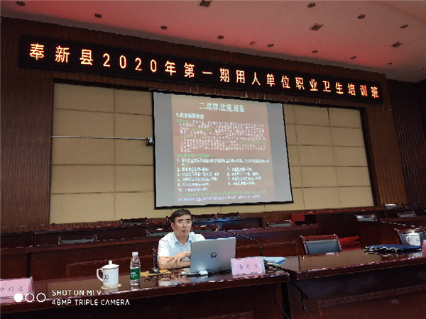 2020年8月1日,湯光華總經(jīng)理在奉新縣,參加“奉新縣2020年第 一期用人單位職業(yè)衛(wèi)生培訓班”,為奉新縣的用人單位負責人培訓職業(yè)衛(wèi)生相關(guān)知識。