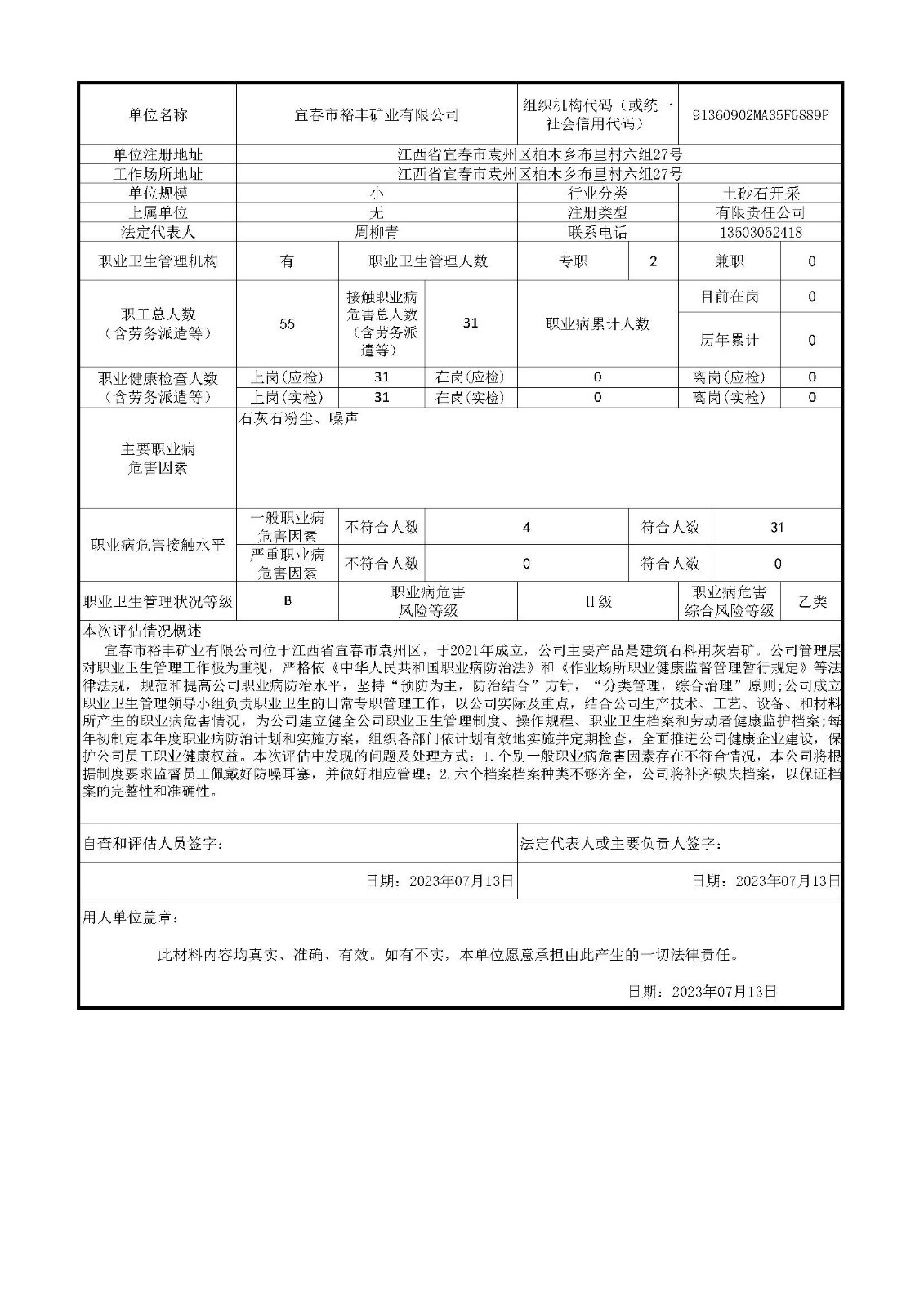 宜春市裕豐礦業(yè)有限公司用人單位職業(yè)病危害綜合風(fēng)險(xiǎn)評估報(bào)告